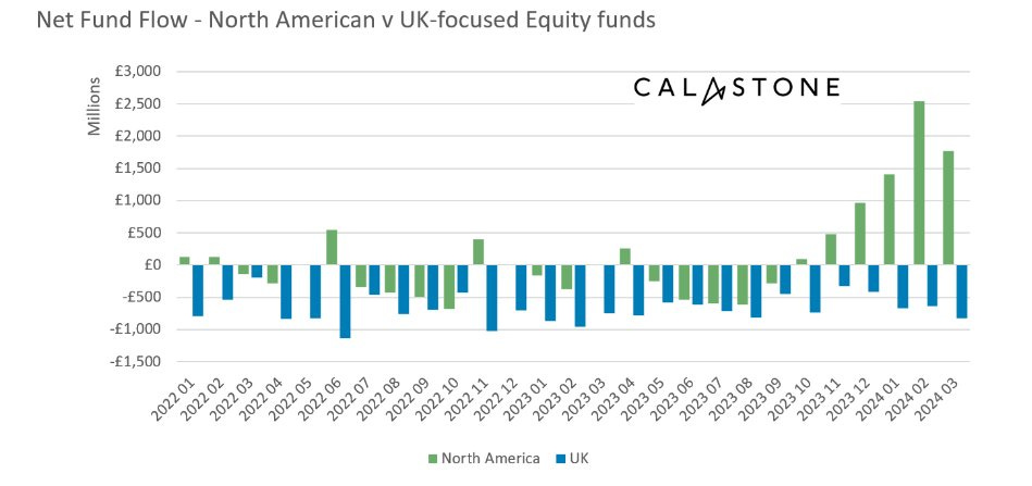 And with such a steep discount for UK vs US stocks, what are UK investors doing? Of course they are… consistently exiting UK equity funds and piling into US equity funds (big tech/mag-7). So not only are UK companies pondering voting with their feet, but UK investors are too!
