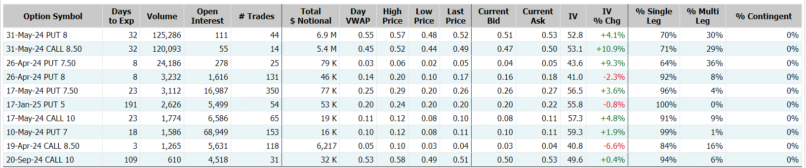There are 296.1.6K Warner Bros Discovery option contracts traded on Tuesday, up 225% from the previous trading day. Put options account for 56% of overall option trades. Particularly high volume was seen for the $8 strike put option expiring May 31, with 125,286 contracts trading. WBD 20240531 8.0 PUT
