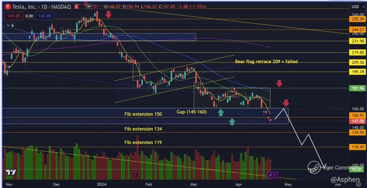 - Breaking down below 145 would see 134 not holding well and 119 being a significant stand