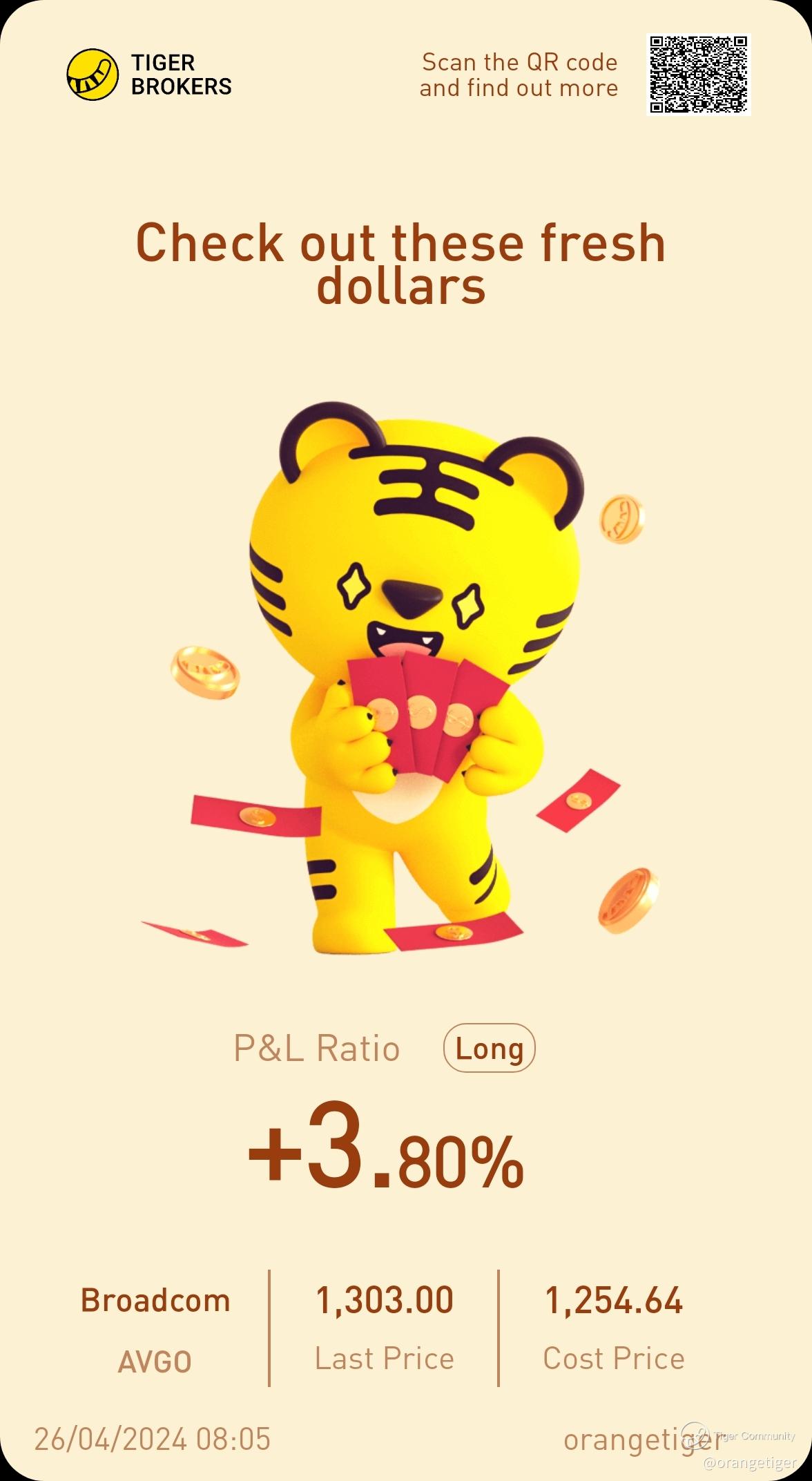 $Broadcom(AVGO)$ can this be bigger to 1350? Will it split? Holding it for this year. Strong as nvdia