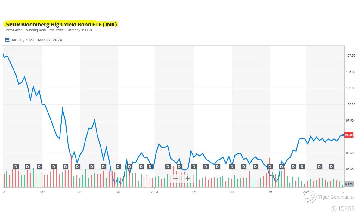 The green graph above is $SPDR Bloomberg High Yield Bond ETF(JNK)$, a benchmark for corporate bonds.