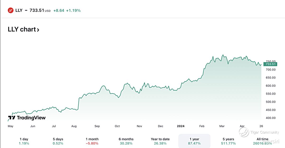 Eli Lilly ($Eli Lilly(LLY)$) has been the talk of the town, with its stock soaring a staggering 125% in the past year. As it joins the heavyweight ranks of the S&P 500, rubbing shoulders with tech giants like Nvidia ($NVIDIA Corp(NVDA)$) and Apple ($Apple(AAPL)$), it's clear that Lilly's growth trajectory is turning heads faster than a neck brace at a tennis match.