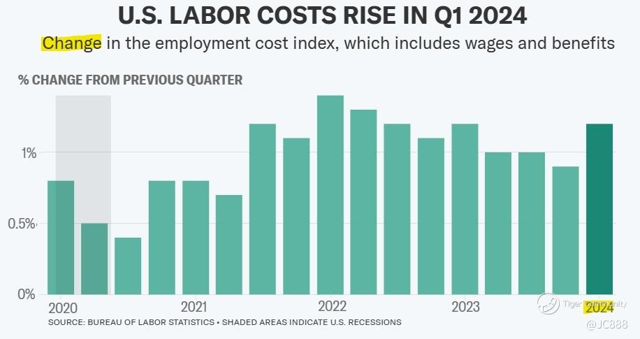 On Tue, 30 Apr 2024 - the Bureau of Labor Statistics also released the US Employment Cost Index (ECI) for Q1 2024.