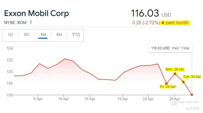 Exxon Mobil stock price since Q1 earnings report.