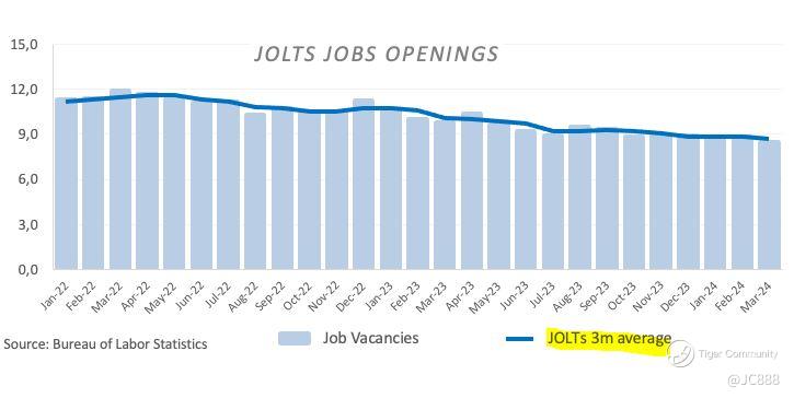 In contrast, the latest JOLTs shows that job openings has fallen to a 3-year low in March 2024. (see above)