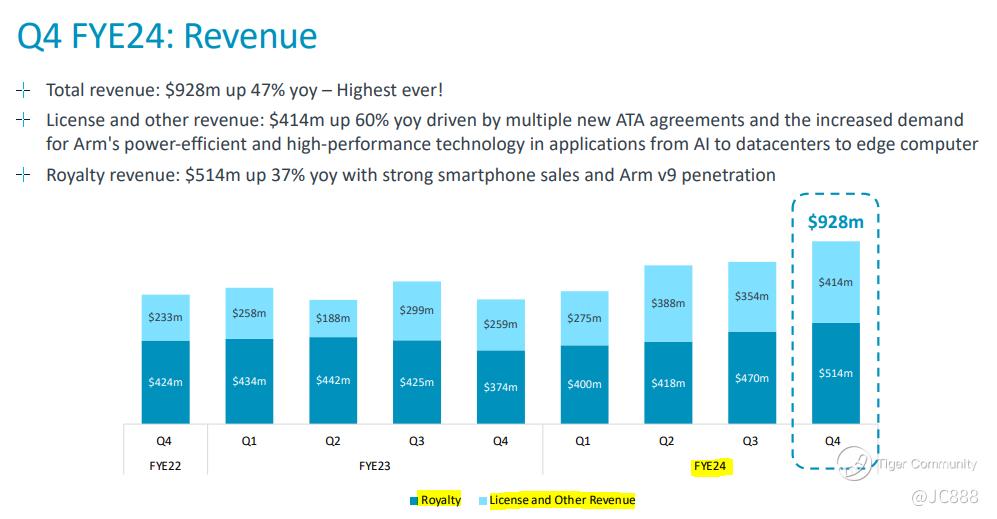 During the quarter, Arm secured 4 major licensing agreements, contributing to substantial growth in that segment. (see above)