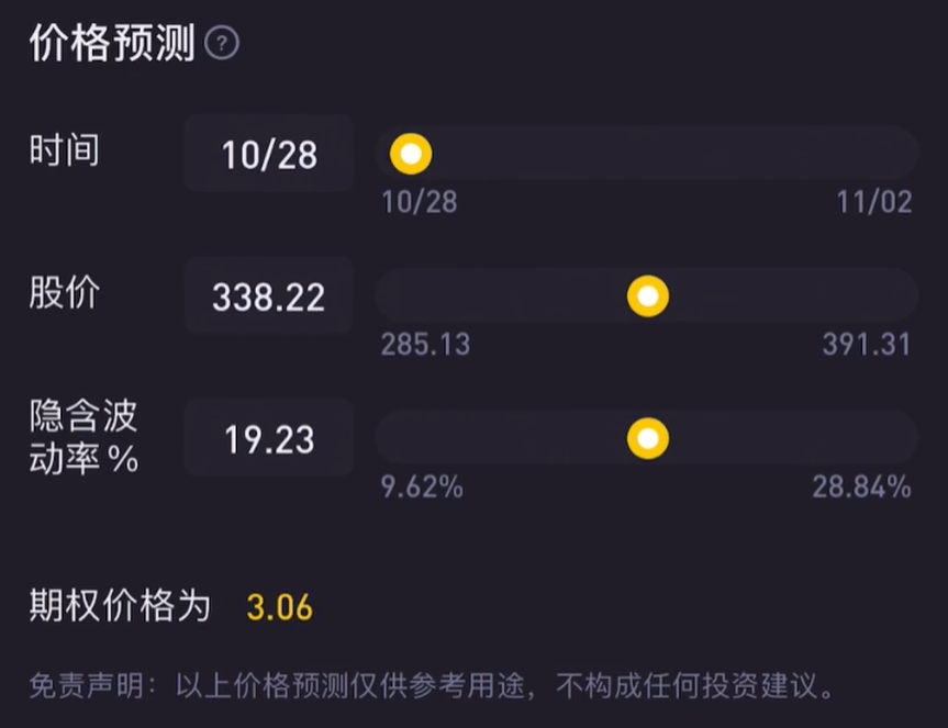 輸入預測條件,包括日期、正股價格、隱含波動率後,自動計算出當天期權的參考價格。
