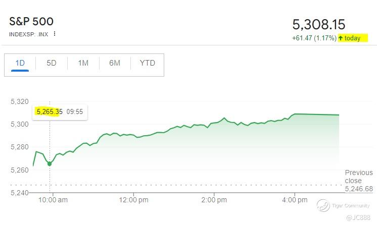 When US market closed on Wed, 15 May 2024, the S&P 500 Index ended mid week at 5,308.15, up +1.17%.
