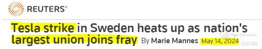 Tesla and Musk refuse to sign collective agreements and instead lied that the labour storm had passed, where Tesla's Model Y is the top-selling car.