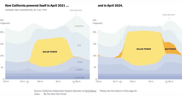 The increased use of solar and wind is happening across the country and Brookfield is a leader in this area. Per the NY Times, California has changed substantially since 2021 as the state now powers itself more with solar and batteries and less with natural gas: