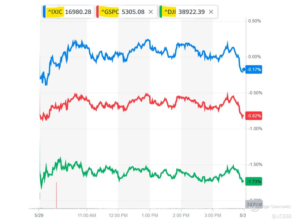 On Wed, 29 May 2024, US stocks waded into the red zone, after a spike in Treasury yields.