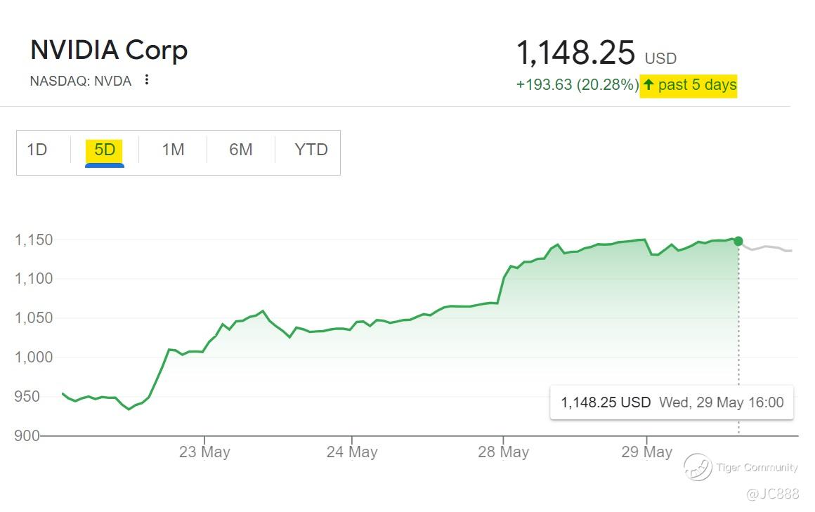 On Wednesday, Nvidia stock rose for a 4th straight day to close on yet another record high. (see above)