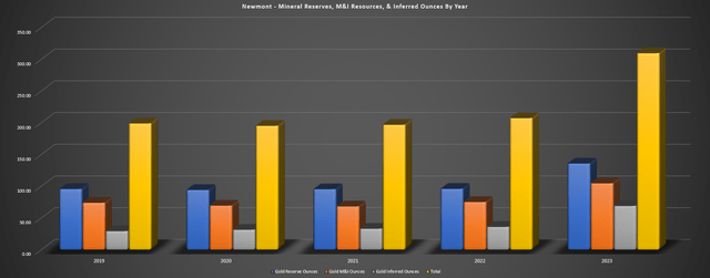 Newmont - Mineral Reserves, M&I Resources & Inferred Ounces - Company Filings, Author's Chart