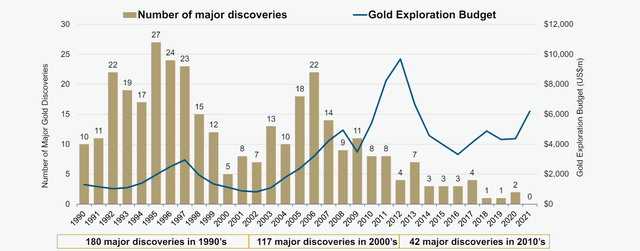 # of Gold Discoveries vs. Gold Exploration Budget - Barrick Presentation, S&P Global Intelligence