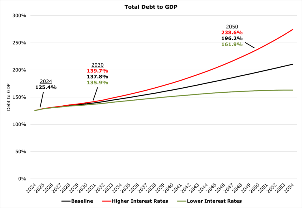 However, fiscal irresponsibility has left little choice but to start cutting. According to the CBO, if interest rates increased to a long-term average of 4.3%, the US Debt to GDP Rate would skyrocket to 238.6% in 2050. In contrast, if rates fell to an average of just 1.7%, US Debt to GDP would be only 161.9% in 2050.