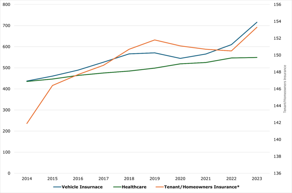 III.org, Tradition. Vehicle and Healthcare 1984=100. Tenant/Homeowners Insurance 1996=100.