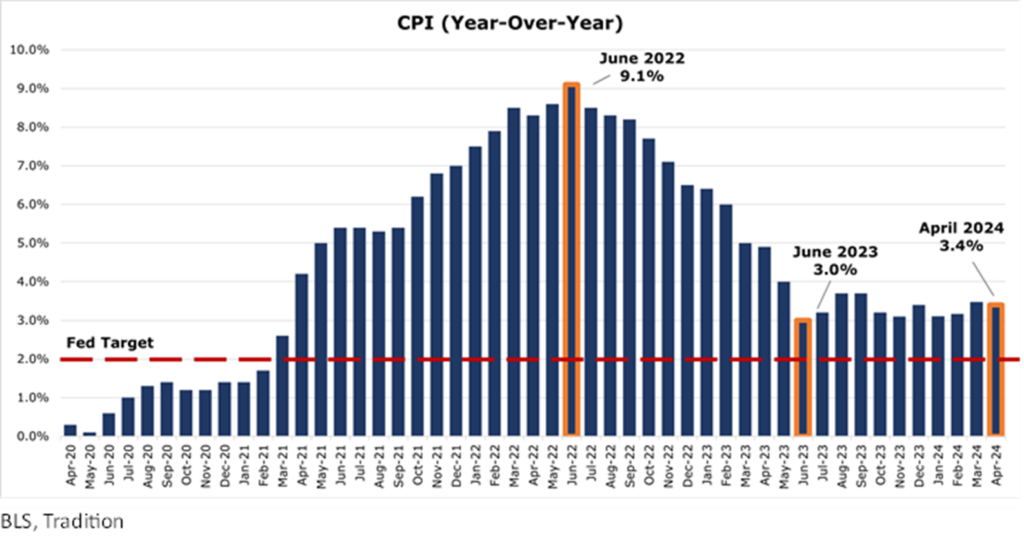 PCE in the consumer durable sector saw its weakest quarter since September 2021, contracting and renewing hard-landing fears. Compounding this was the April inflation release that showed prices still growing at 3.4% year over year, a mere 0.1% deceleration compared to March.