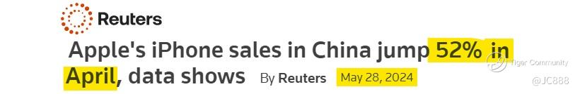 For starters, Apple's smartphone shipments in China rose 52% in April from a year ago.