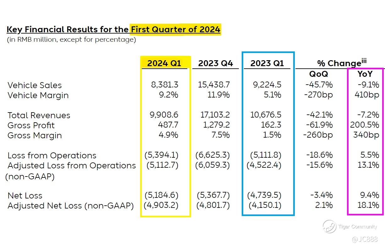 $NIO Inc.(NIO)$ has just announced its Q1 2024 earnings.