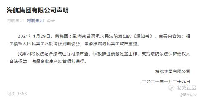 當然,國內也沒好到哪裏去,一些持有海航股票的讀者可能也要罵娘了,因爲,今天,海航,官宣,破產了。