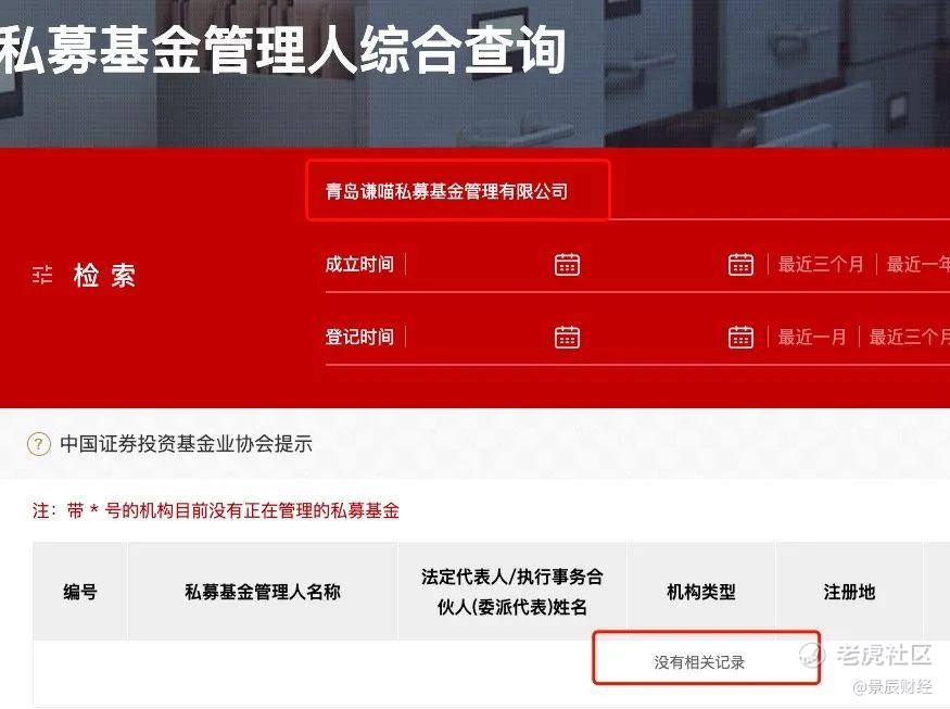 我看了一眼中國證券投資基金業協會官網,目前青島謙喵私募基金管理有限公司還沒備案。