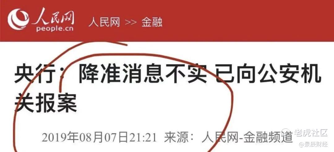 2019年8月7日,央行就不實的降準消息向公安機關報案。