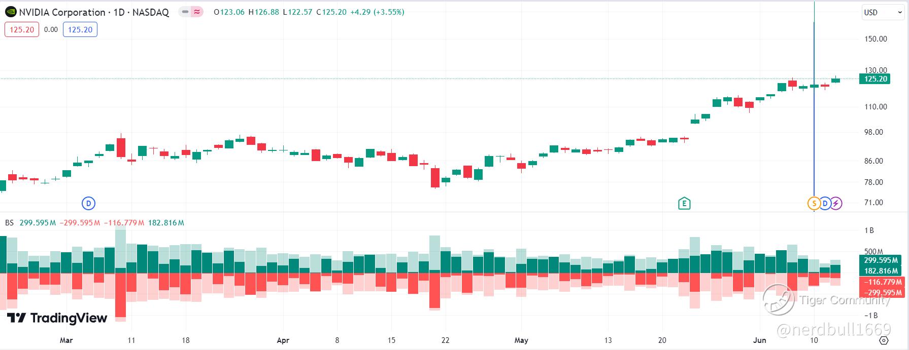 On the buy and sell volume, we are not seeing a significant high BUY volume forming, this could mean Nvidia might still be providing small gains and there will still be selling happening.