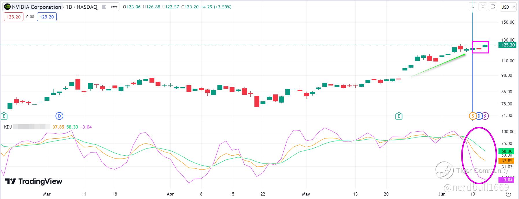 But after the stock split, there is no significant bullish upside move for $NVIDIA Corp(NVDA)$ , from the chart below, it is actually trading sideway, and KDJ is actually predicting that we are going to see some downward trend trading.
