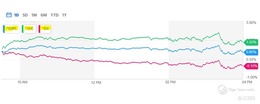 Nasdaq: +1.53% (+264.89 to 17,608.44). The tech index added to a record close from the prior day.