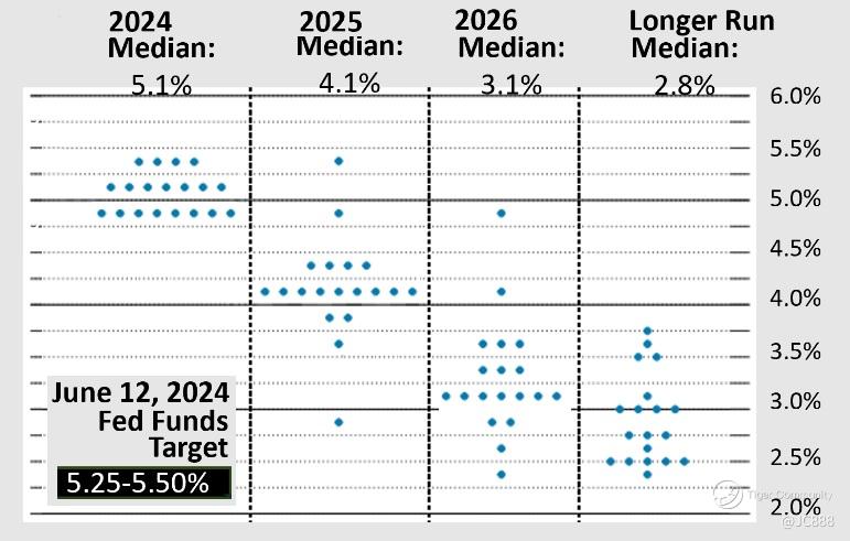 Coming back to 2024, the quarterly Summary of Economic Projections (SEP) known informally as the “dot plot”, saw:
