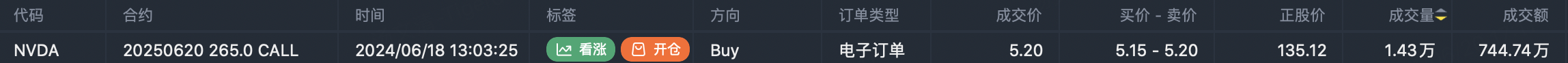 The day after Buffett trimmed, someone bought 143,000 $NVDA 20250620 265.0 CALL$ - June 20, 2025 expiry with $265 strike for $7.45 million in premium.