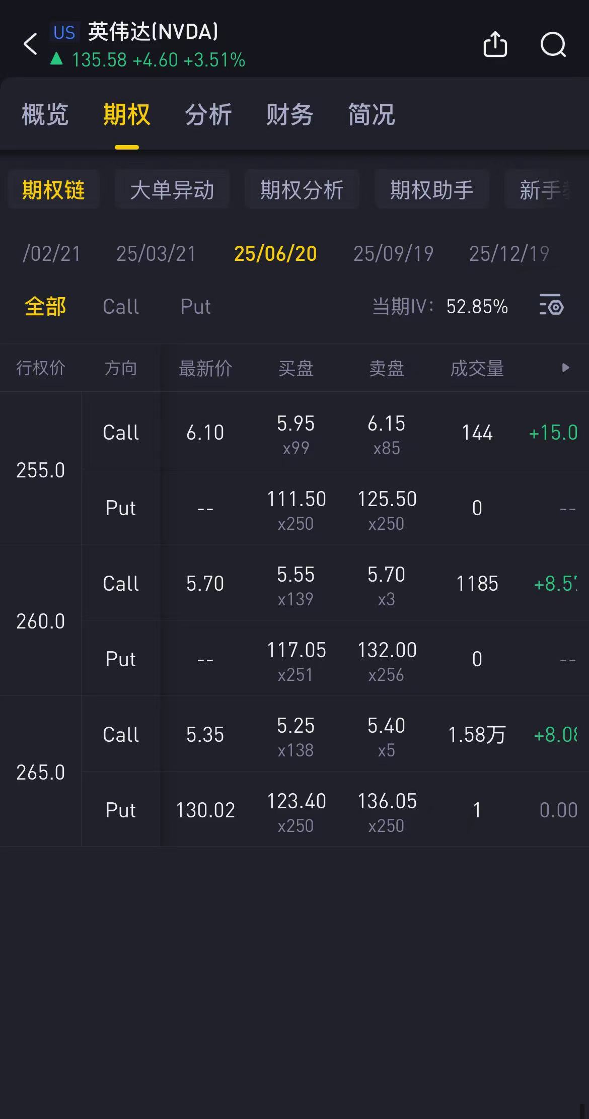 The highest strike listed for that June 20, 2025 expiry is capped at $265.