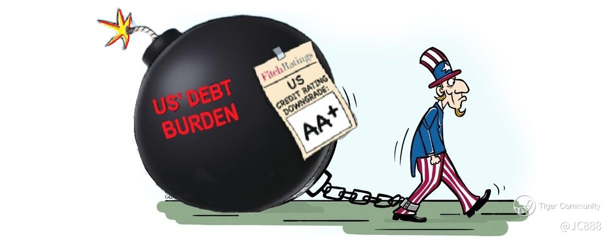 Financial Sector: Banks and financial institutions are an economy’s barometer. When national debt begins to affect its economy, bank stocks will be the first to react as it affects their bottom lines. And so the top 3 most affected would be $JPMorgan Chase(JPM)$, $Bank of America(BAC)$ and $Wells Fargo(WFC)$ based on market capitalization.