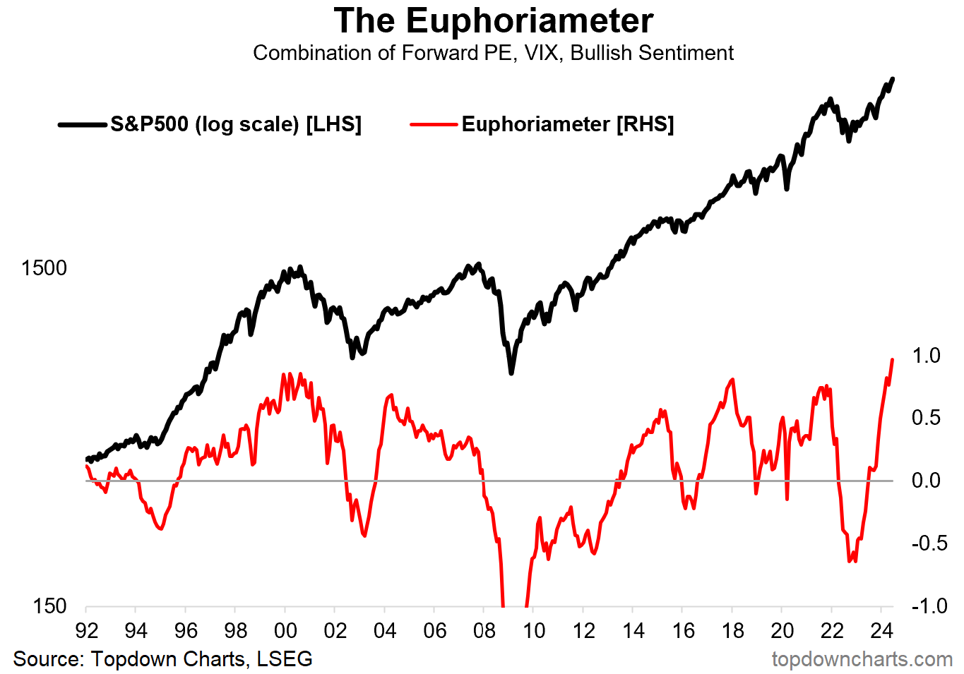 5. Record Euphoria: The Euphoriameter combined sentiment/cycle tracker reached a new all-time high in June. Interesting point though, breaking out for this thing is often actually a bullish sign (whereas peaking later in the cycle after an extended move: that’s when it’s bearish).