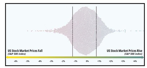 ▫️ The dots outside of those two lines are the days where the S&P 500 moved 1% or more.
