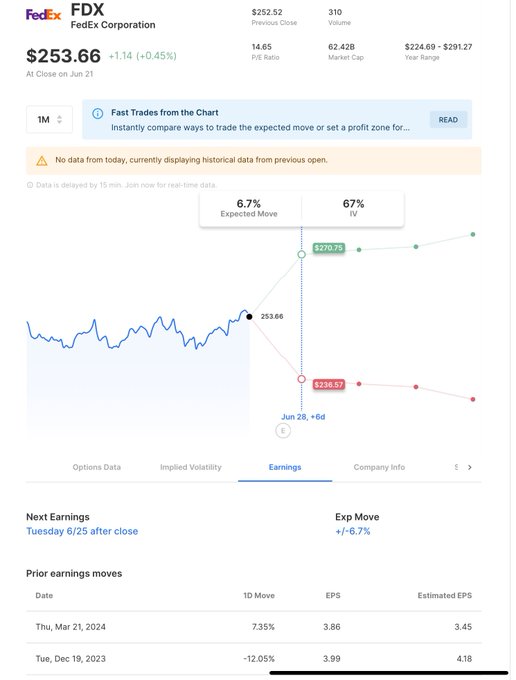 Oh $FedEx(FDX)$ ... we meet again ... might take a pre-earnings optionselling trade