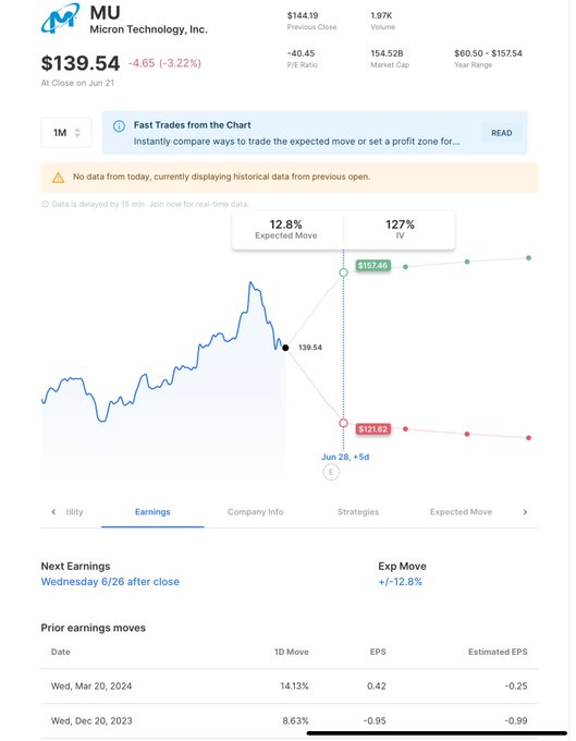 Pre-earnings optionselling trade idea on $Micron Technology(MU)$