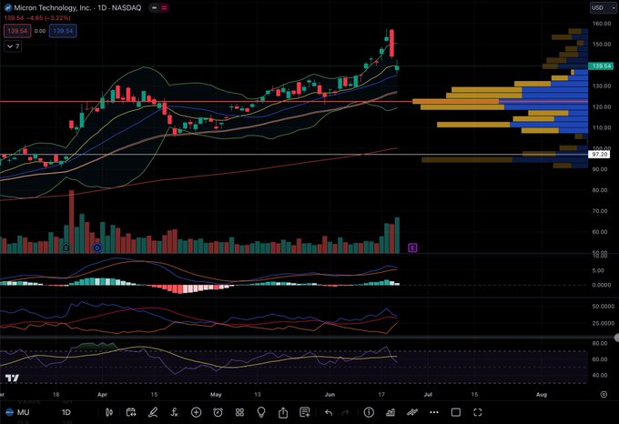- Sell-to-open June 28 expiration strangle, 105 strike put (could hedge by buying the 97 strike put) and 215 call (highly doubt MU moves 50+% post-earnings)
