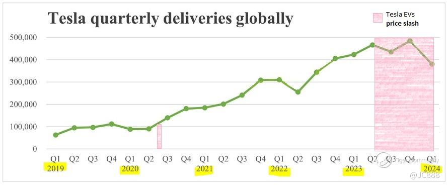 Tesla began slashing prices for its electric vehicles (EVs) at different points in time.