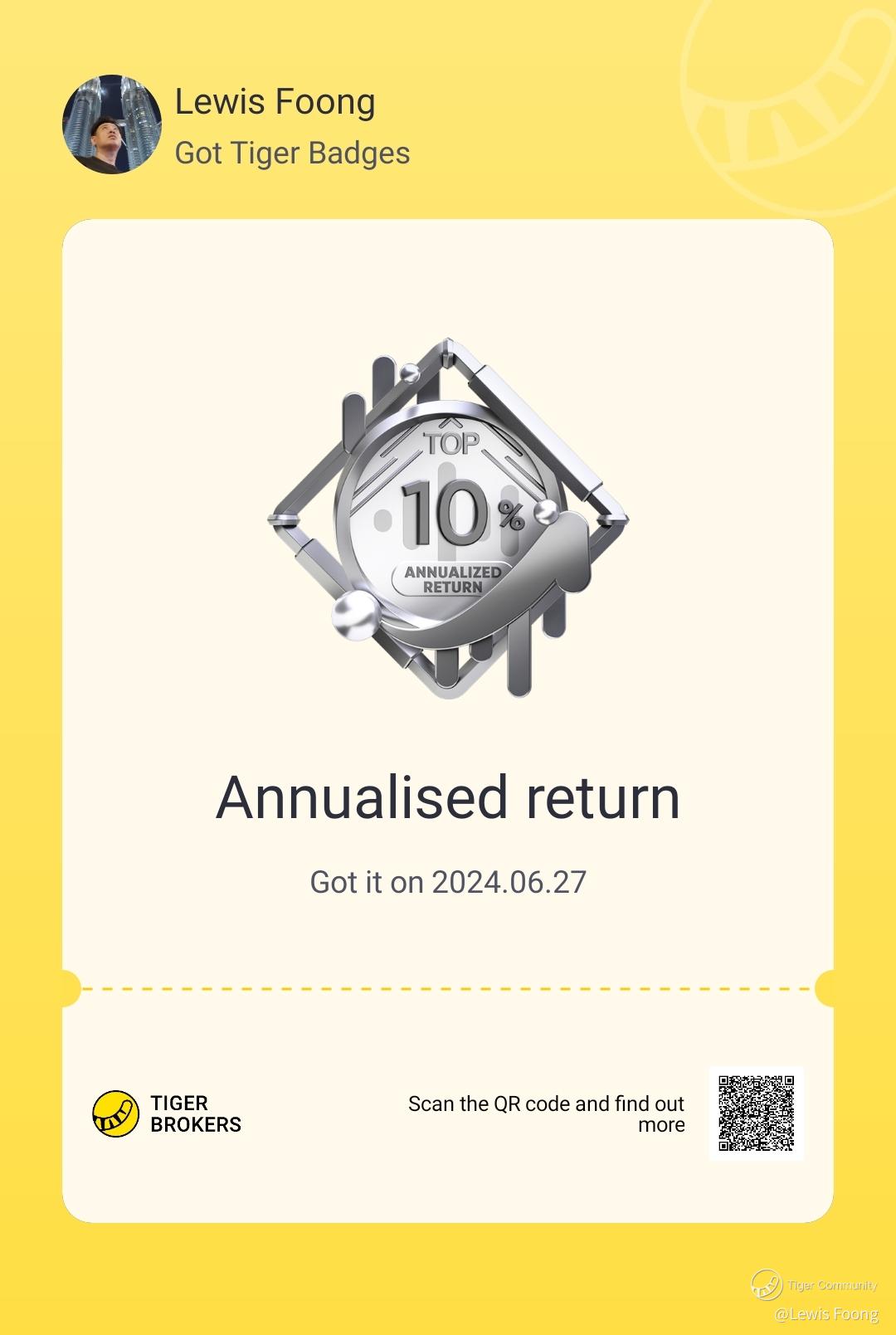 I'm a top 10% higher return among the tigers family, can't denied i have put enough efforts on my investment strategies! For my opinion, I know 2024 is a good year for invest in US market, the locomotive still surging up! Tigers , pls grip tightening the chance!