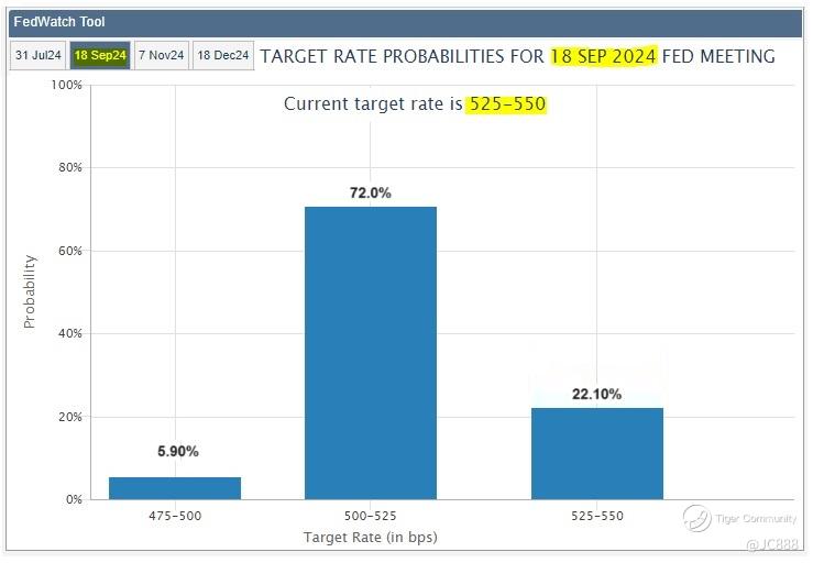 And just like that CME Fedwatch tool for 18 Sep 2024’s -0.25% interest cut rose to 72.0% from 57.9%. (see above)