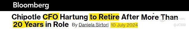 On 10 Jul 2024, Chipotle announced that its CFO Jack Hartung would be retiring on 31 Mar 2025, following his 25-year tenure.