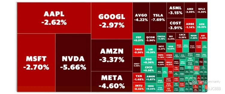 Shares of $NVIDIA Corp(NVDA)$ and $Meta Platforms, Inc.(META)$ - the two biggest YTD winners in the group - were the next most sizable daily losers, each off more than -4.5%.