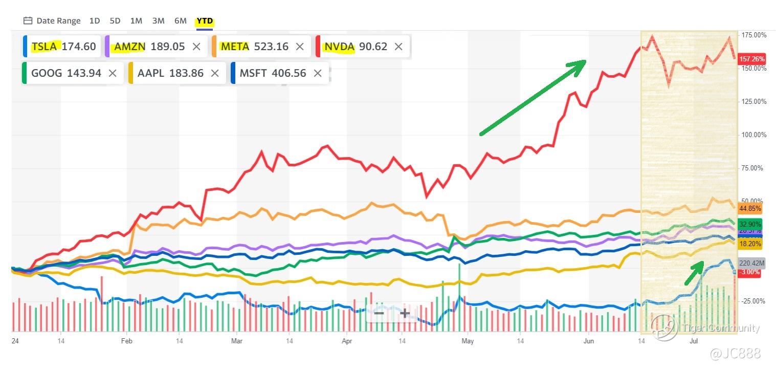 No guessing required which Magnificent Seven stock is still the best performer (Nvidia) in 2024, so far.