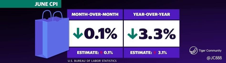 US core CPI (YoY) came in at 3.3%, lower than forecast of 3.4% & lower than May’s data of 3.4%.
