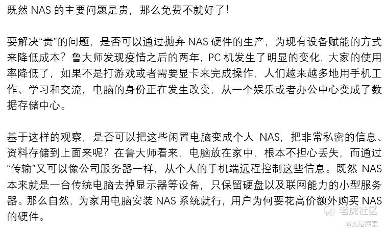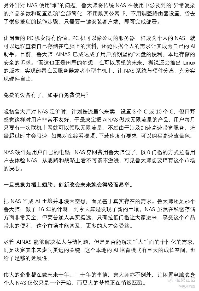 其實這個魯大師AiNAS產品應該叫NAS OS,有點類似鴻蒙OS與其他車企的關係,魯大師想做的不是NAS硬件,而是做成一個NAS平臺軟件。它不僅大幅拉低了NAS的門檻,潛伏在NAS裏的野心也隱隱可見。