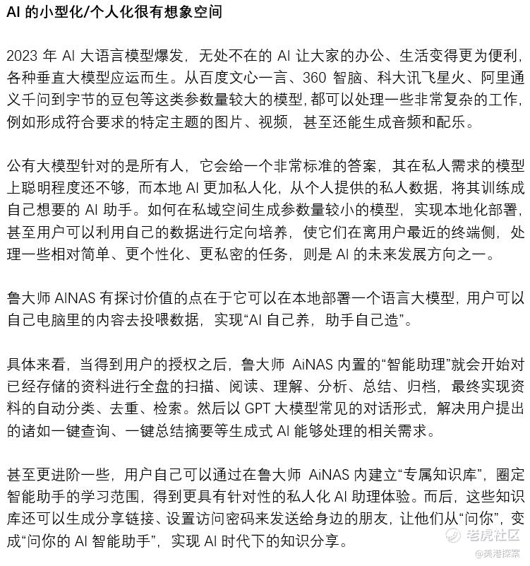 - 翟菜花专栏·2024-07-16尽管AINAS能够解决私人存储问题有限,但是做到这样已经不错了LikeReport