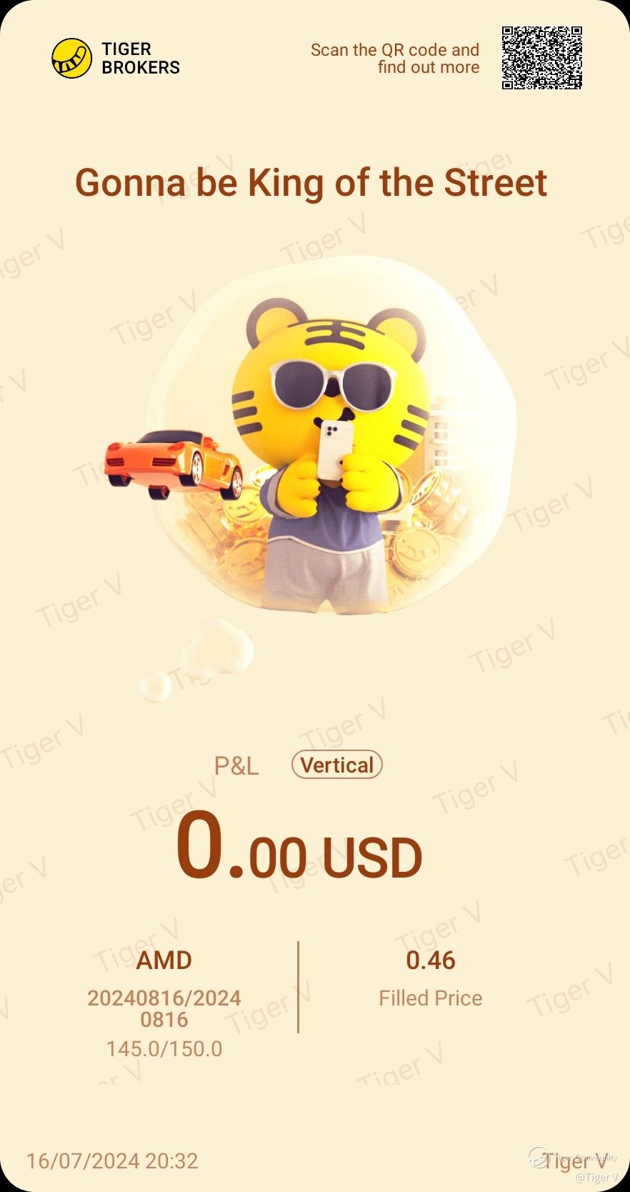 On July 15, 2024, I initiated a vertical put option strategy for AMD $Advanced Micro Devices(AMD)$ by selling a put option at a strike price of $150 and buying a put option at a strike price of $145, with a maturity date of August 16, 2024. This strategy allowed me to collect an option premium of $46 per contract. The underlying AMD stock has been relatively stable, even as the S&P 500 index $S&P 500(.SPX)$ has reached new all-time highs.