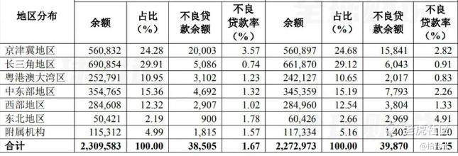 分區域來看,華夏銀行京津冀地區的不良率和不良貸款餘額均遠高於其他地區,由2022年的2.82%大幅攀升至2023年的3.57%。