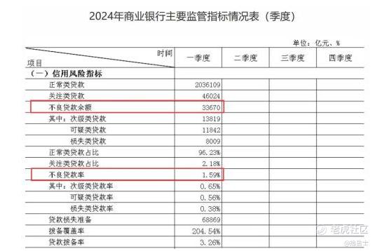 金融監管總局最新數據顯示,2024年一季度商業銀行不良貸款餘額爲3.4萬億元,較2023年底增加1414億元;商業銀行不良貸款率爲1.59%,與2023年底持平。